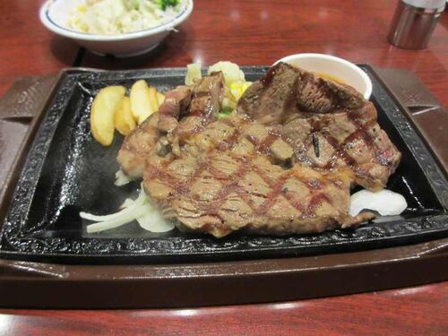 昨日ご馳走になったのは携帯で送った様にステーキです。 お手軽にステーキガストでご馳走になりました。 頼んだのは「熟成ロースステーキ(200g)」です。 肩ロース肉をチルドで1ヶ月熟成させてるそうで肉の旨味が味わえます。 カレーやスープやサラダ…